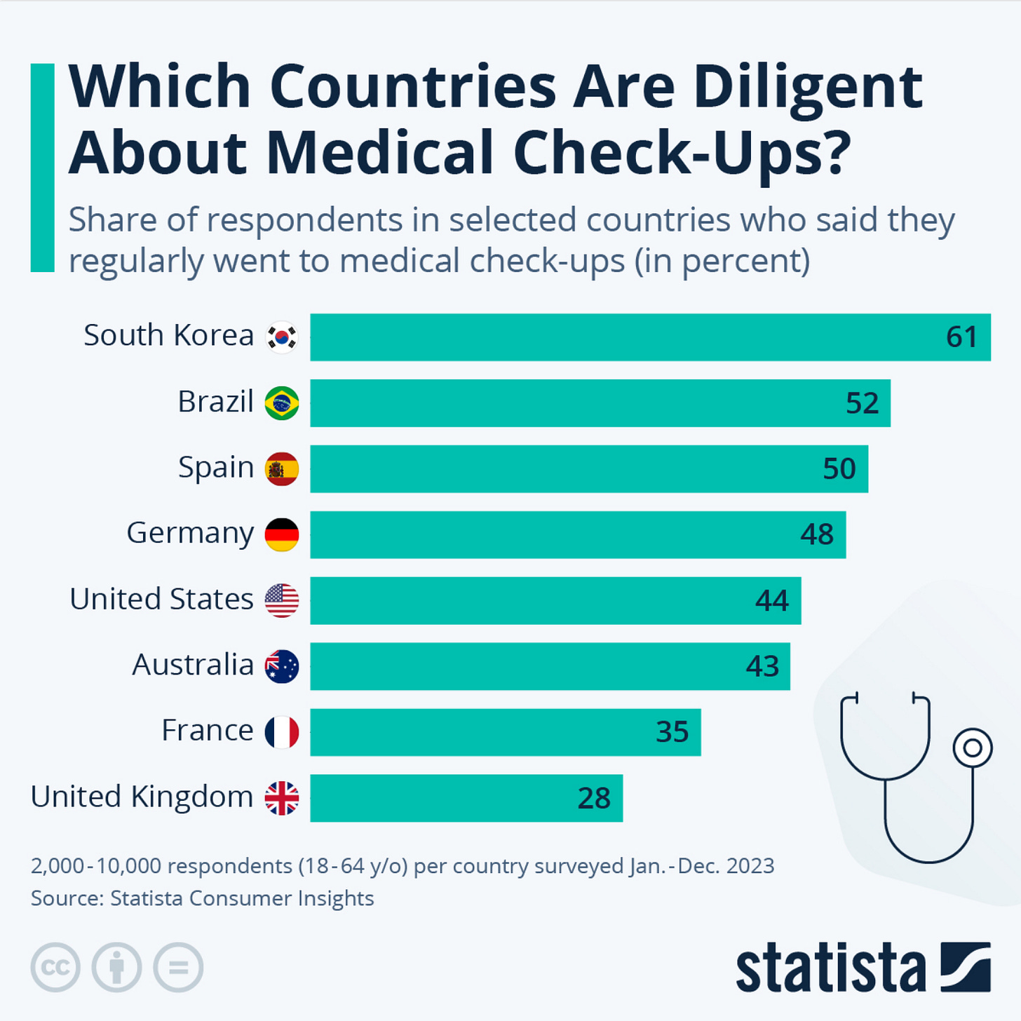 Here’s something that caught my eye today: the country with the highest proportion of people who regularly attend medical check-ups (South Korea)…