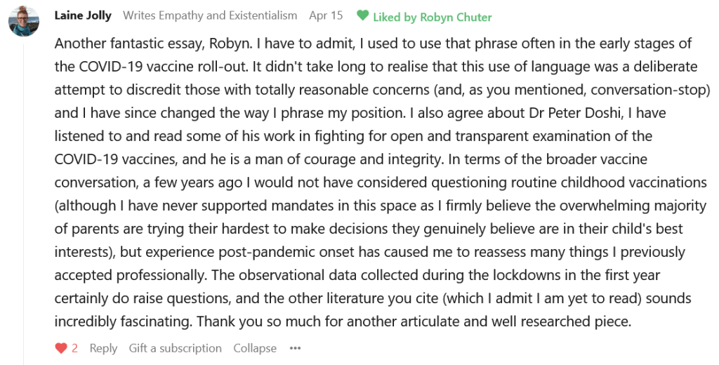 There’s a fascinating phenomenon that I’ve been observing in the Comments section of my Substack. As I mentioned in a previous post, Are doctors the new antivaxxers?, people who have never before questioned the safety or efficacy of vaccines, or the role they have played in reducing sickness and death from infectious disease, are now casting a critical eye over the entire vaccine enterprise.