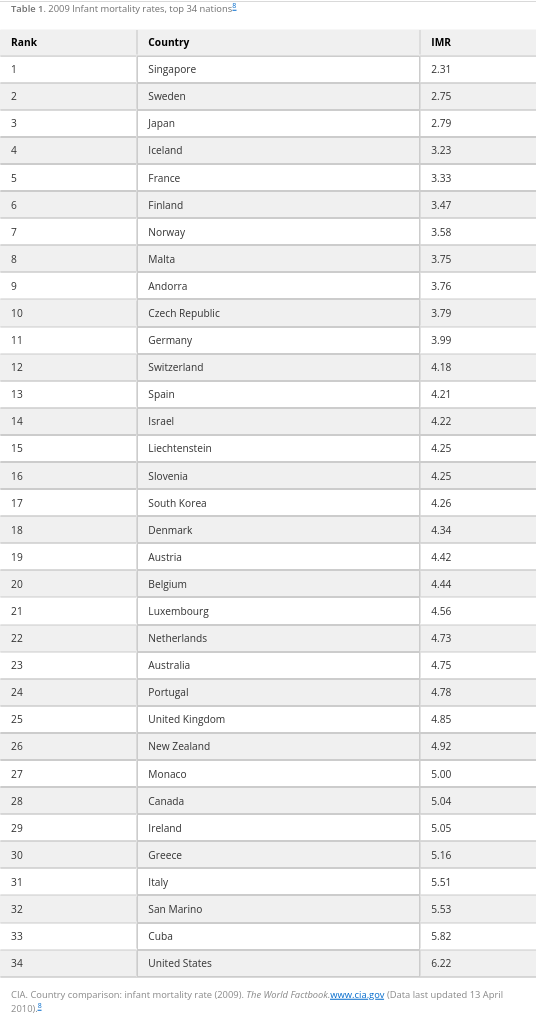 (Does it strike you as odd that Cuba has a lower IMR than the wealthy country that has maintained an embargo on it since 1962, crippling its economic development and hindering its access to medical supplies?)
