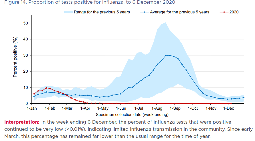 Influenza practically disappeared in Taiwan and Singapore. Notably, influenza virtually vanished from Australia at a time when only Victoria had mandated the wearing of face masks in public, so the mask promoters definitely can’t claim credit for it.