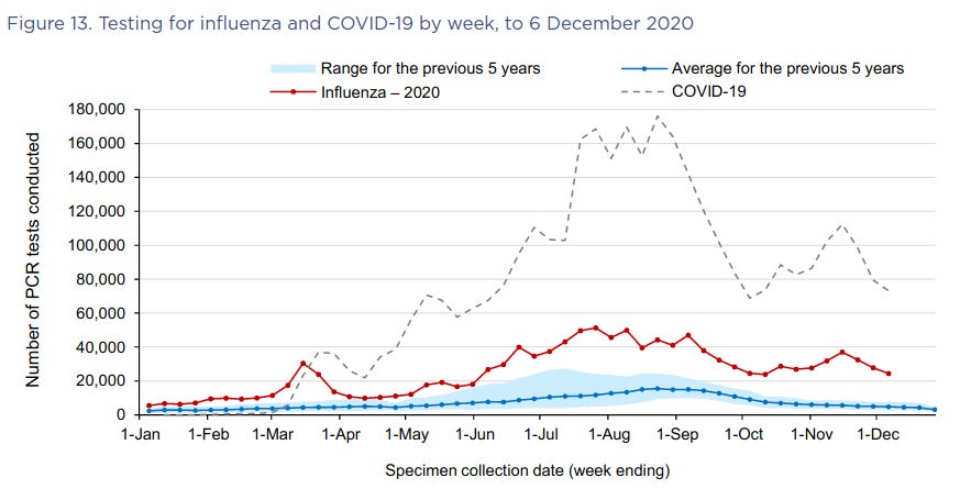 The disappearance of influenza also wasn’t due to a lack of testing; the number of laboratory tests for influenza increased in 2020: