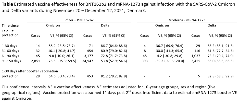 For example, the Danish State Serum Institute published the following table in a report dated 17 December 2021, indicating that 91% of Danes infected with the Omicron variant had received at least 1 dose of a COVID-19 injection, with nearly 80% double-jabbed: