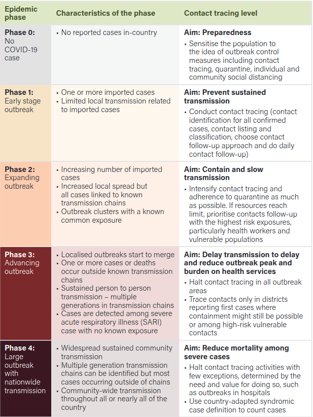 The Africa Centres for Disease Control and Prevention recommend ceasing contract tracing once sustained transmission is underway: