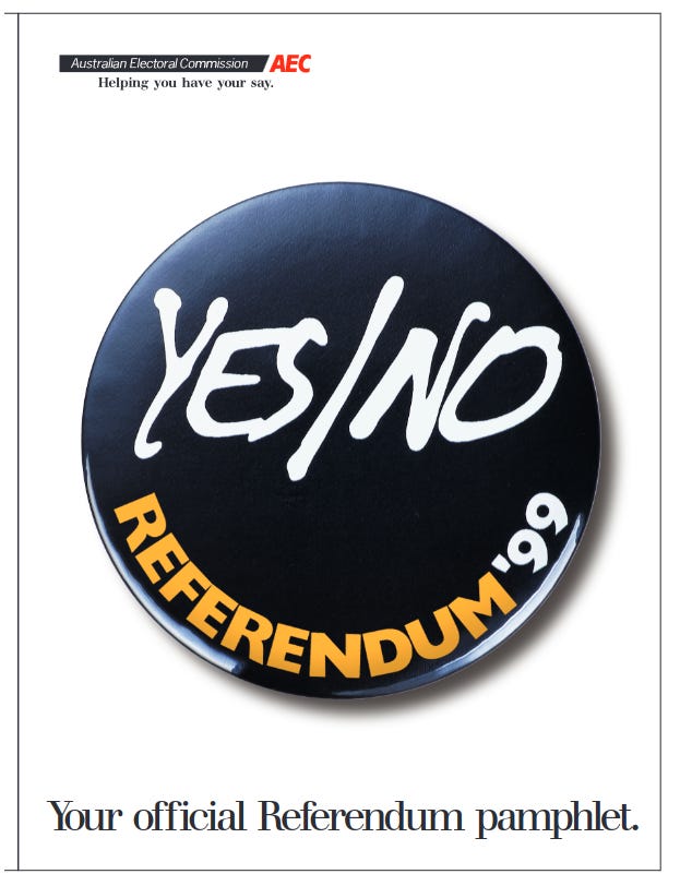 Back in 1999, Australians were required1 to vote in a referendum (plebiscite) to amend the country’s Constitution, to change the model of government from a constitutional monarchy to a republic.