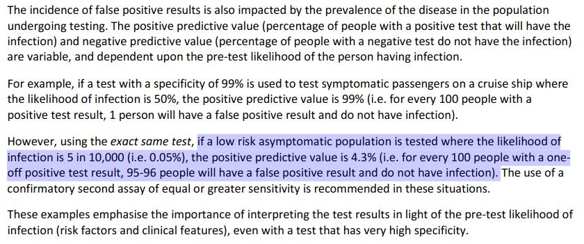 So the Gold Coast Public Health Unit randomly tested 260 people, 250 of whom had absolutely zero symptoms, and without any attempt to calculate the positive predictive value of the test, pronounced 31 of them to “have COVID”.