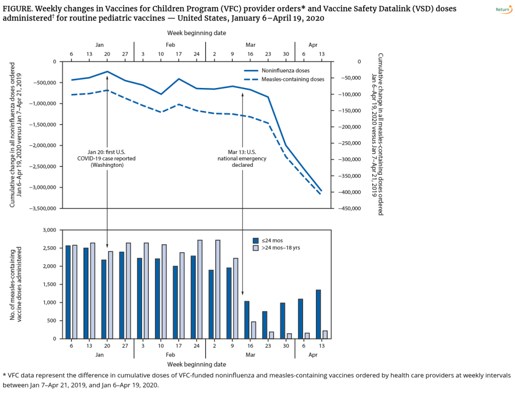 The US Centers for Disease Control and Prevention (CDC) wailed at the sharp decrease in doses of vaccines ordered by health care providers in the first quarter of 2020, and gnashed its teeth at the decline in the share of five-month-old Michigan babies who were “up-to-date” on vaccines from an average of roughly two-thirds to less than half, during the three months in which stay-at-home orders were in place.